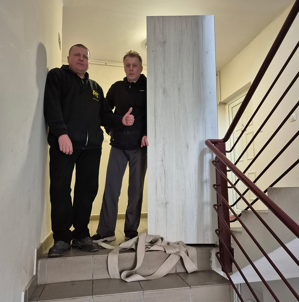 Nemrégiben egy kanapé és egy fotel szállítására kaptunk felkérést. A megrendelő szerint „1 órás munka” volt. A helyszínen derült ki, hogy a bútorok nem férnek be a liftbe, a 2. emeletre pedig csak centiről centire, a lépcsőházban forgatva lehetett feljutni.